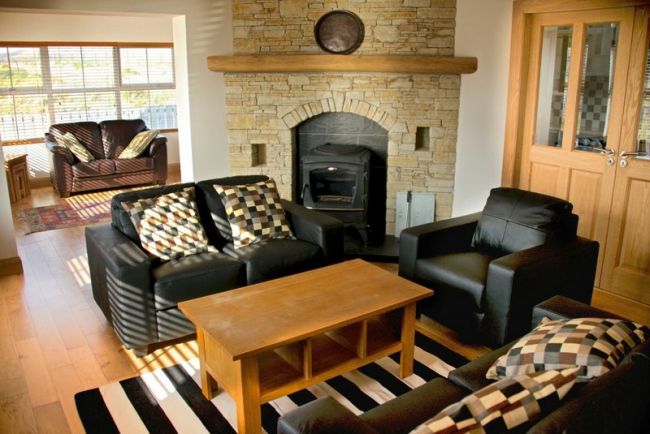 • living area has centrepiece stone fireplace with wood burning stove